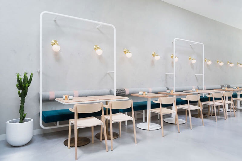 Đây là phong cách khá hiện đại, được thiết kế nội thất đưa vào như một phong cách khác biệt, làm tươi mới thêm những phong cách thiết kế nội thất ấn tượng. Sự đơn giản chính là phương châm chủ đạo của lối thiết kế này. Tất cả các vật dụng chỉ để “vừa đủ” để toát lên những nét tinh tế riêng của quán. Sự bài trí đơn giản kết hợp cùng tông màu chủ đạo luôn được lựa chọn là màu trắng, hoặc xám. Mang đến một nét đơn giản, nhưng đẹp tinh khiết. Ưu điểm của phong cách này chính là không gian quán như được mở rộng ra, rộng rãi, thoáng mát.